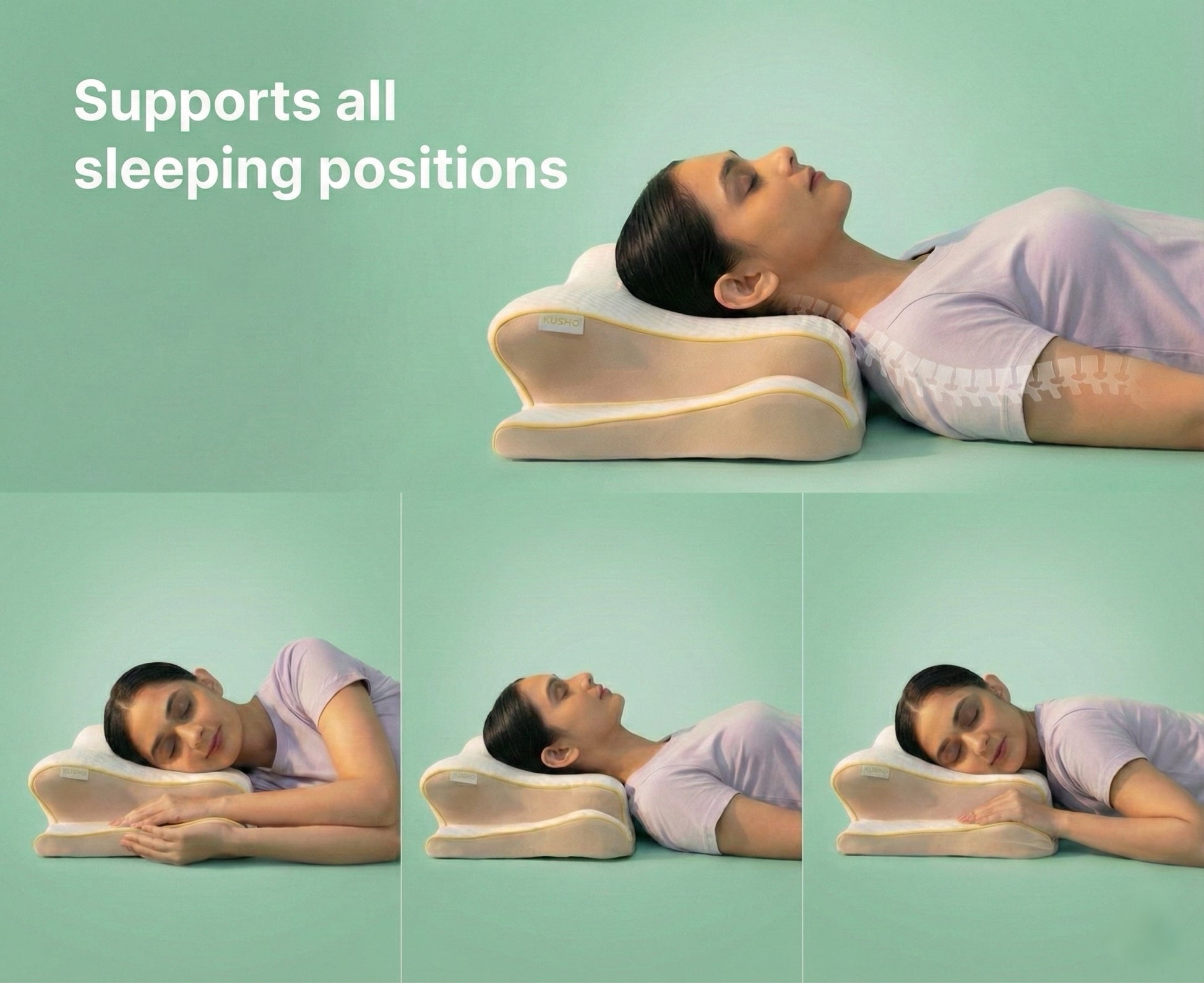 Shaped to cradle your neck and shoulders for all-night support. - Side, back, or stomach—rest assured.