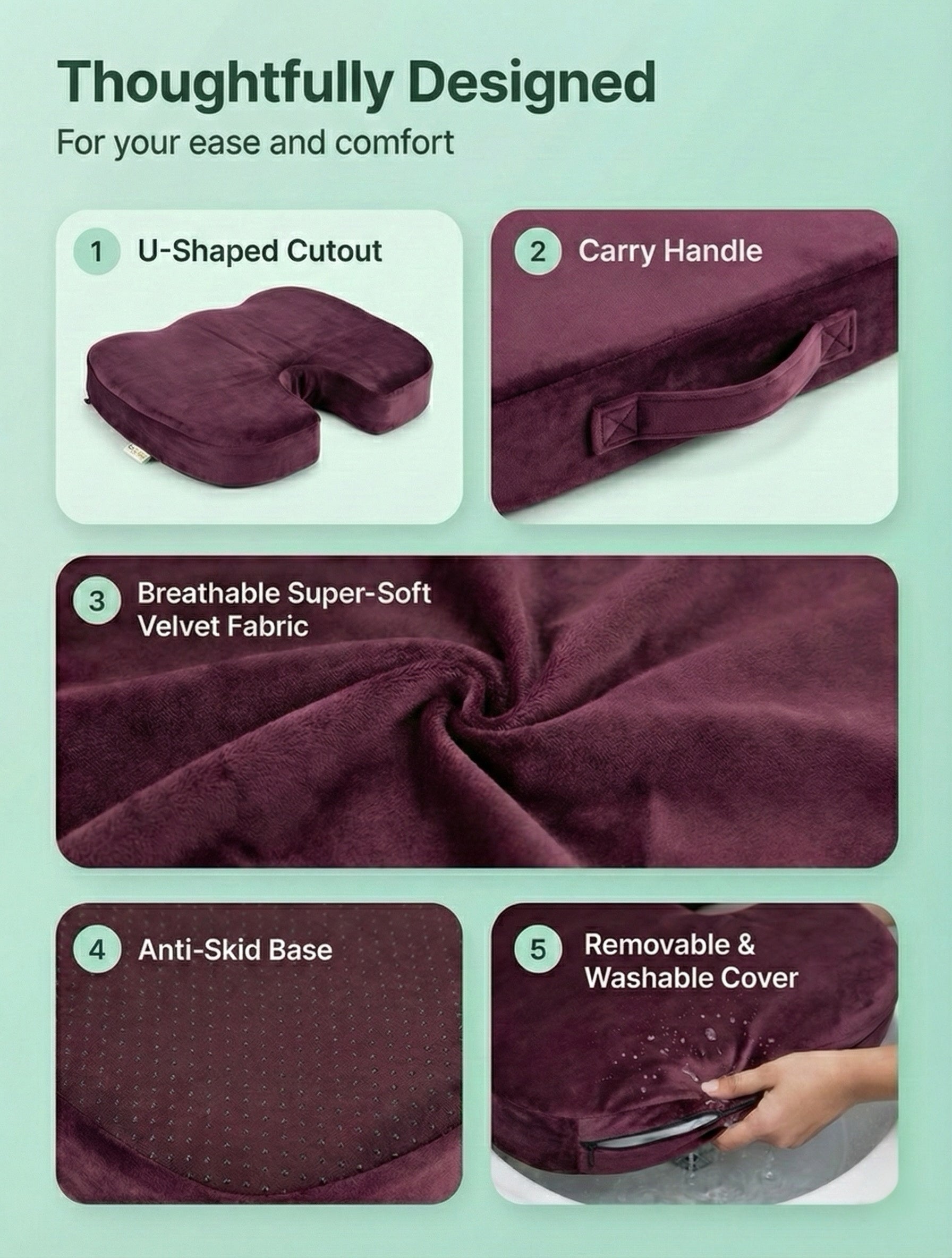 - Super-soft comfort – cloud-like cushioning for your tailbone.